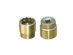 防爆重型套筒是用于上紧或卸松螺丝的一种防爆工具,可与接杆、万向接头、滑行头、棘轮扳手等配套使用。其材质分为铝青铜和铍青铜两种,以铝青铜为材质的防爆工具工作面硬度HRC在25°以上,抗拉强度δ b> 75-85kgf/mm2,其它技术指标全部达到国外同类产品先进水平。在易燃气体乙烯(浓度7.8%)空间连续使用均确保 ,冲(撞)击、摩擦、落锤均不产生火花爆炸;以铍青铜为材质的防爆工具工作面硬度HRC在35°以上,抗拉强度δ b>105-120kgf/mm2,基它技术指标全部达到国外同类产品先进水平。在易燃气体氢气(浓度21%)空间连续快速使用均保 ,冲(撞)击、磨擦、落锤均不产生火花爆炸。铍青铜防爆工具还具备特殊的防磁功能,在有磁场的工作环境中能够正常使用, 加适用于要求非常严格的工作环境。